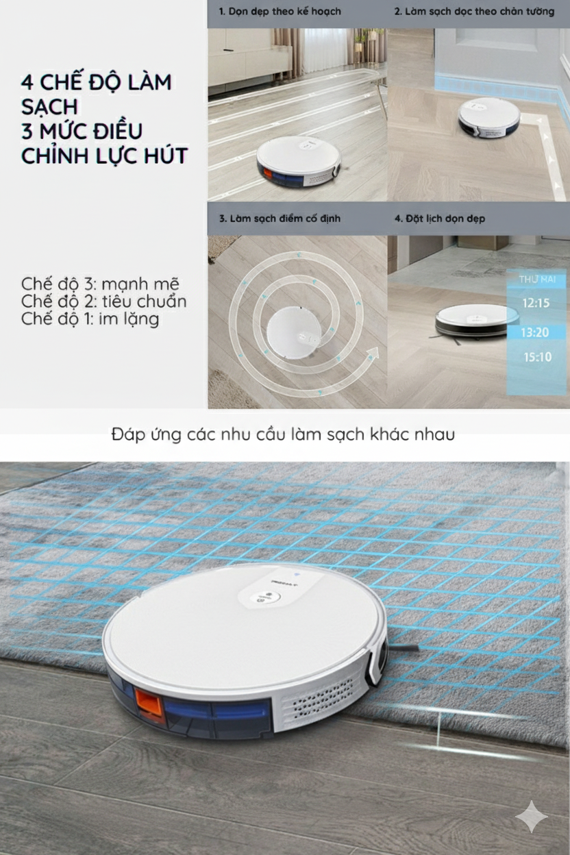 • Tự động hẹn giờ dọn dẹp và điều chỉnh chế độ theo nhu cầu.