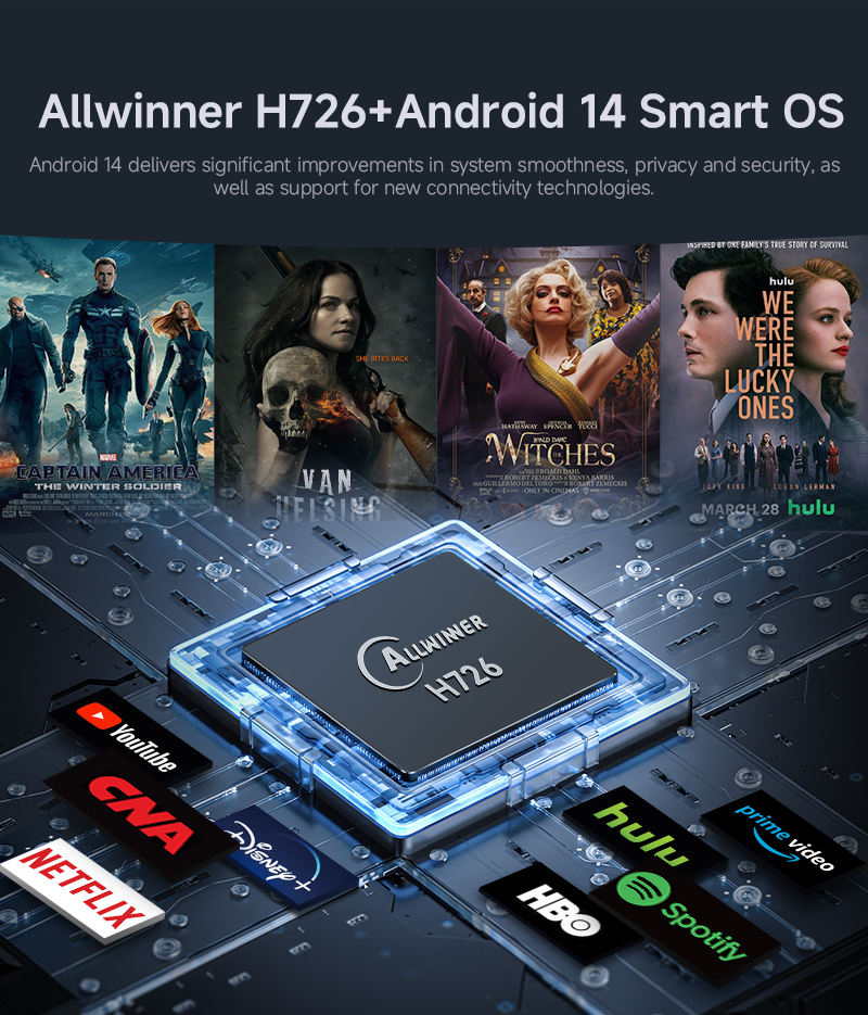 - Kết nối siêu tốc: Hỗ trợ Wi-Fi 6 (2.4G/5G) và Bluetooth 5.4, đảm bảo đường truyền mượt mà, không giật lag khi xem phim 4K hoặc chơi game.